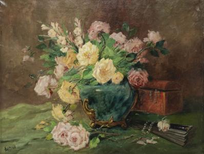 Bouquet de fleurs, huile sur toile, signée et datée 1921, 54x45...