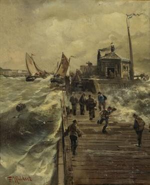 Mer en tempête, huile sur toile, signée F.Waldert, 54x44 cm