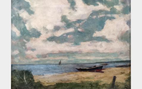 Barque sur la plage, huile sur toile, signée, 45x60 cm