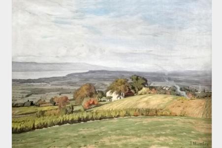 Vue du lac Léman, huile sur toile, signée et datée, 45x60 cm