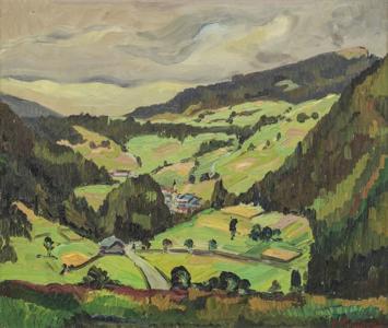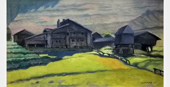 Vue d'un village probablement Trient, huile sur panneau, signée...