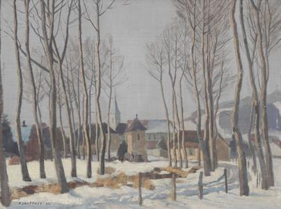Premières neiges, huile sur toile, signée et datée 1935, 40x57 c...