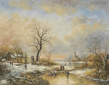 Paysage de neige, huile sur panneau, signée et datée 42, 46x61 c...