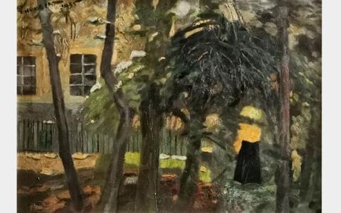 Promenade sous les arbres, huile sur toile, signée et datée 44,...