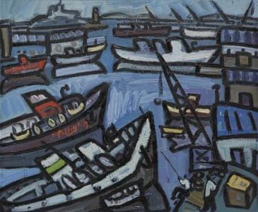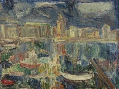 Honfleur, la Lieutenance, vue de l'avant-port, huile sur pavatex...