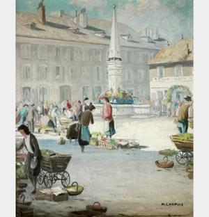 Marché de Plainpalais, huile sur toile, 37x53 cm