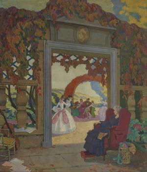 Scène animée sous la treille, huile sur toile, 171x145 cm
