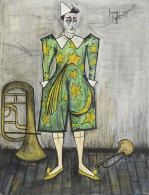 Le clown vert au trombone, copie d'une œuvre de Bernard Buffet,...