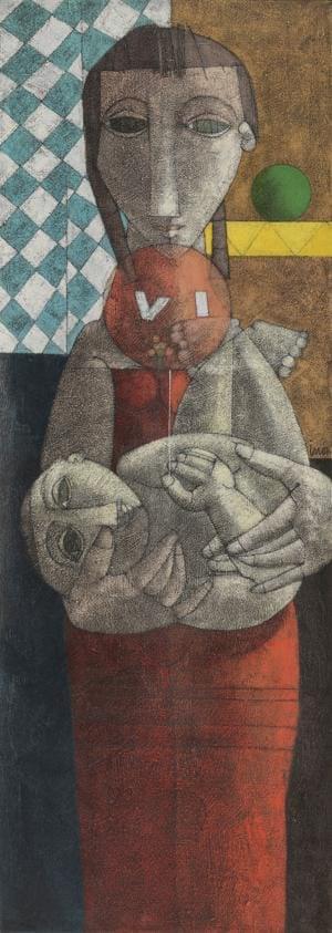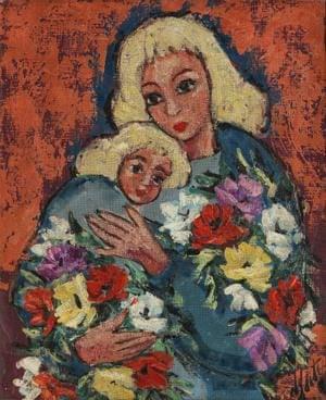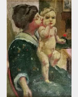 Maternité, huile sur toile, signée, cachet de l'atelier au dos,...