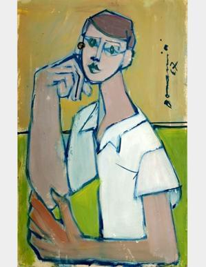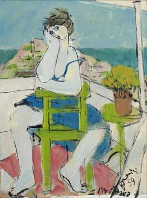 Personnage assis sur une chaise, huile sur carton, 68x51 cm