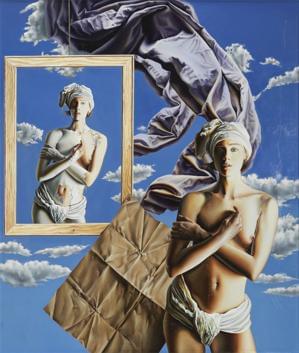 La chambre à air, huile sur toile, signée et datée 76, 100x120 c...