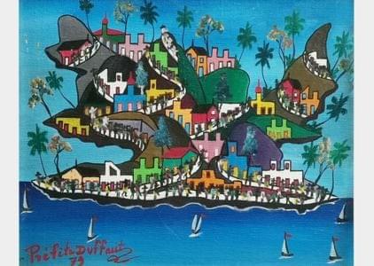 Scène de marché, acrylique sur toile, signée et datée 1991 au do...