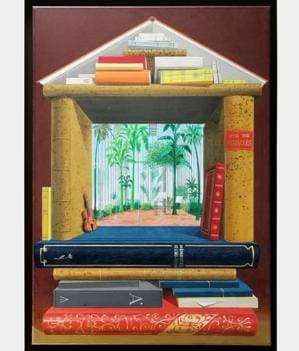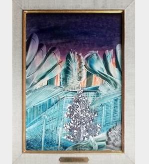 Le bol d'or, technique mixte sur toile, avec envoi et dédicace à...