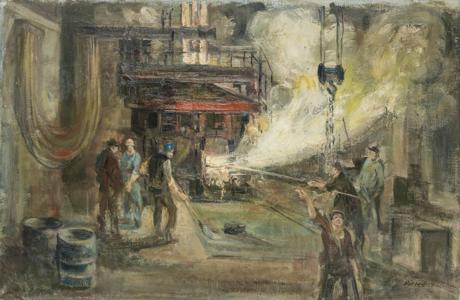 Fonderie, huile sur toile, signée et datée 64, 47x71 cm