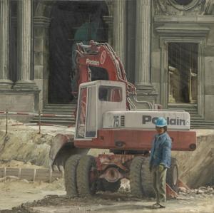 Le chantier du Louvre, huile sur toile, signée et datée 1988, 54...