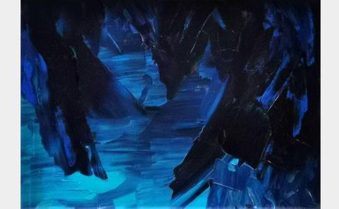 Abstraction bleu, acrylique sur toile, signée, 16x22 cm