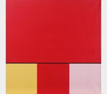 Rectangle rouge dans un rectangle noir, technique mixte, plaque...