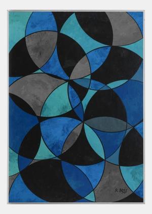 Composition géométrique, acrylique sur toile, cachet d'atelier a...