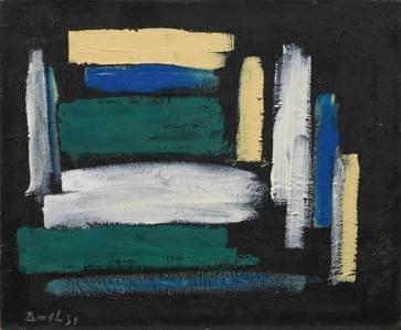 Abstraction, huile sur toile, signée et datée 51, 46x55 cm