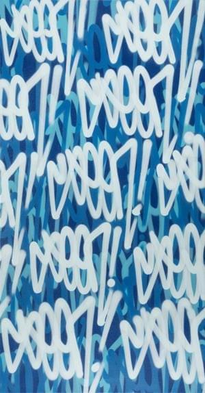 Blue Multi Tags, aérosol sur toile, signé au dos, 124x66 cm. On...