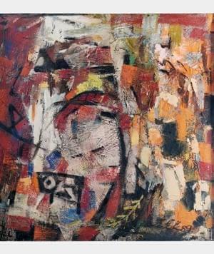 Composition moderne, huile sur toile, signature illisible et dat...