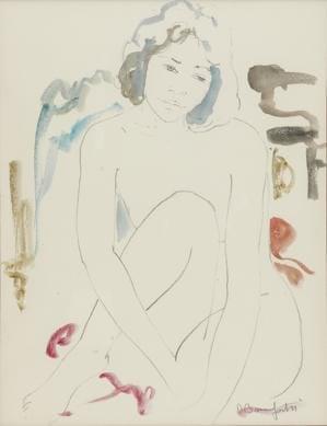 Femme nue assise, crayon gras et aquarelle sur papier, 63x49 cm