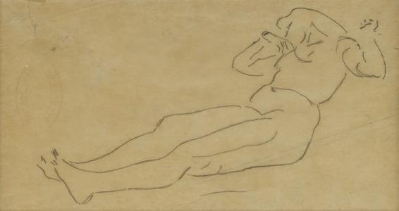Femme couchée, mine de plomb sur papier, cachet de la succession...