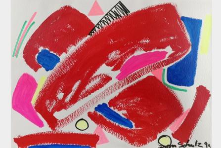 Composition rouge, gouache sur papier, signée et datée 90, 70x10...