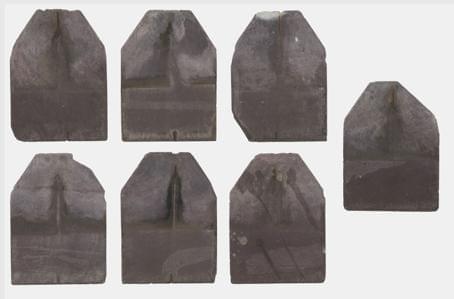 Suite de sept ardoises gravées d'inscriptions, 30x22 cm. Provena...