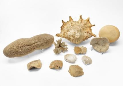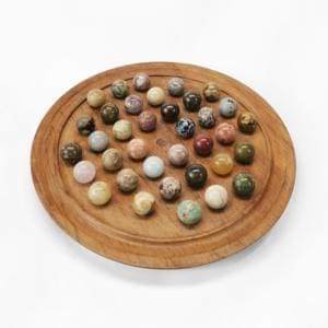 Plateau en bois et sphères en pierres semi-précieuses et marbres