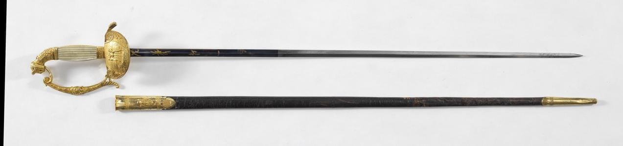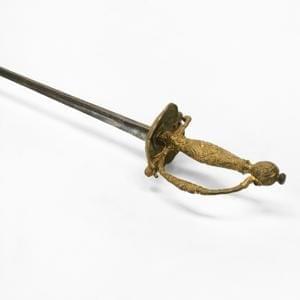 H 168 cm, socle en plexiglas. La pointe est restaurée.