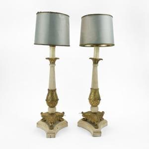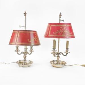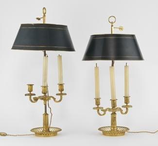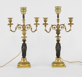 3450. Paire de flambeaux d'époque Restauration, montés en lampe