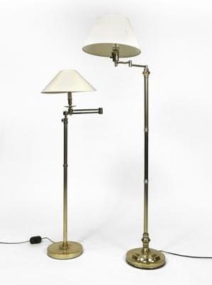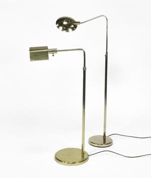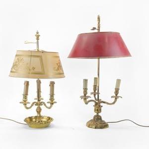 Bronze doré et tôle laqué rouge et beige, H 64 et 74 cm