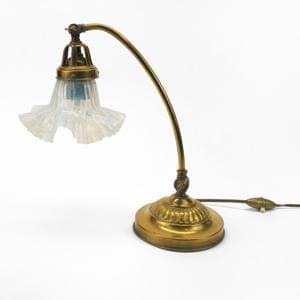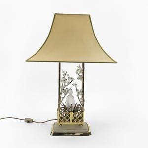 Laiton, abat-jour plissé à fleurs, H 25 cm