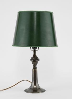 Bronze à patine brune, abat-jour vert, H 27 cm