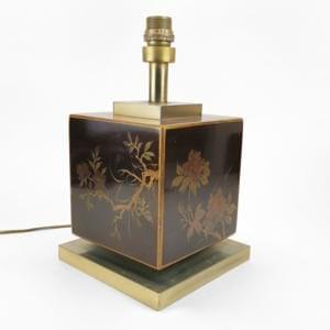 Bois laqué à décor de fleurs sur fond bordeaux, 23x23x23 cm