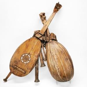 Lames fines de pin courbées, l'une signée, H 53 cm