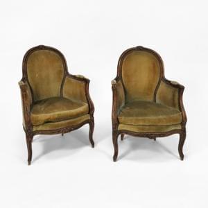 3710. Paire de bergères de style Louis XV, XIXe s
