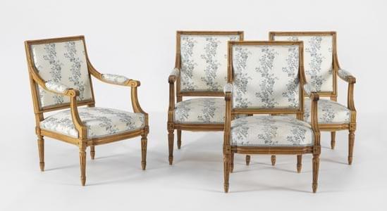 3722. Quatre chaises et deux fauteuils d'époque Louis XV