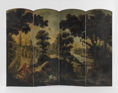 3761. Paravent quatre feuilles, fin XVIIIe s, début XIXe s