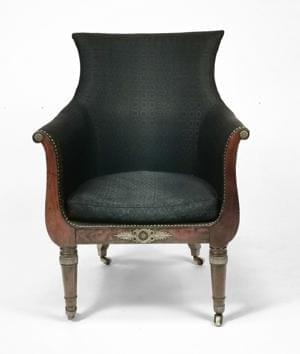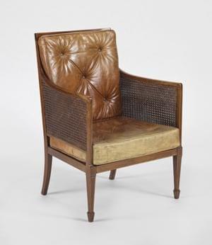 Acajou, filet de bois clair, cuir capitonné