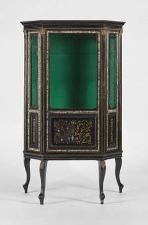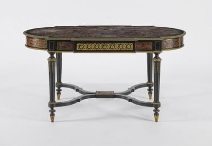 Bois noirci à décor en marqueterie Boulle de cuivre sur fond d'é...