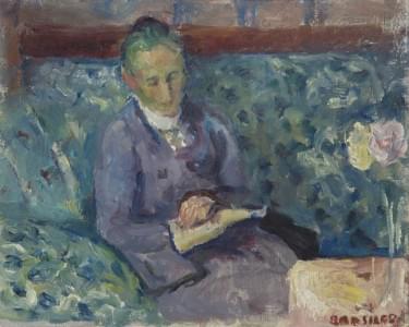Grand-mère à la lecture, huile sur toile signée, 22x27 cm