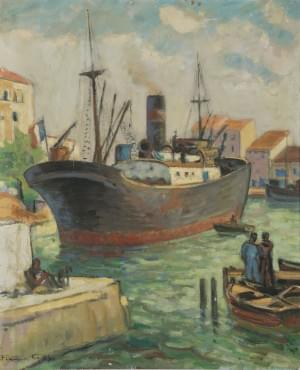 Port de Toulon, huile sur toile signée, 60 x 50 cm