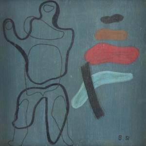 Composition abstraite, huile sur carton, monogrammée B et datée...