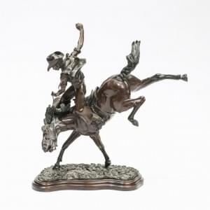 Le rodéo, bronze à patine brune, signé, H 35 cm