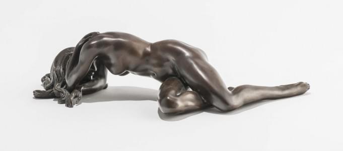 Séduction, bronze à patine brune, signé et numéroté 79/399, H 44...
