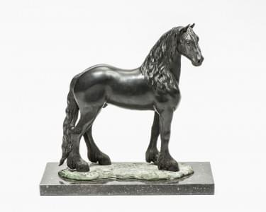 Cheval de trait, bronze à patine verte, monogrammé WB et numérot...
