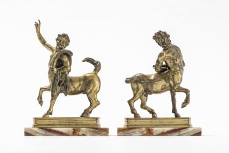 Paire de sujets, bronze doré, XIXe s, H 12,5 cm