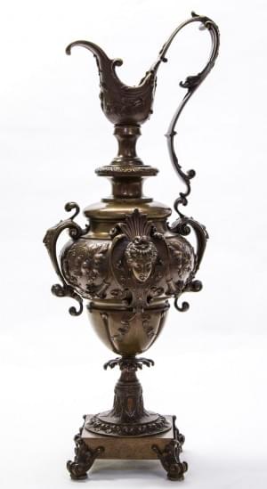 Bronze à patine brune à décor de cuir découpés, mascarons et rin...